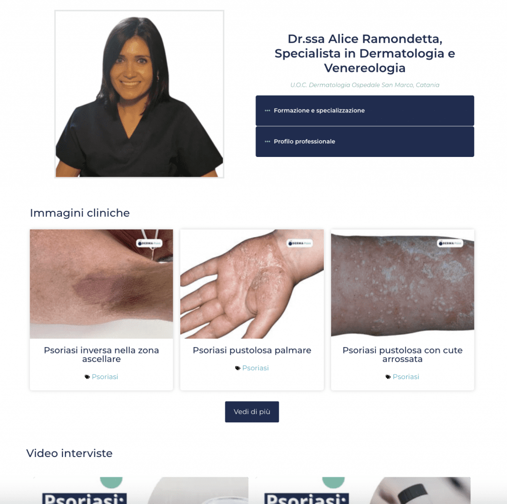 Per esempio nella pagina del singolo medico: https://www.derma-point.it/dr-ssa-alice-ramondetta/ troviamo tutte le interviste, immagini, domande frequenti e articoli appartenenti allo stesso.